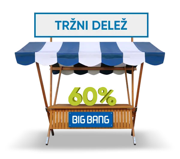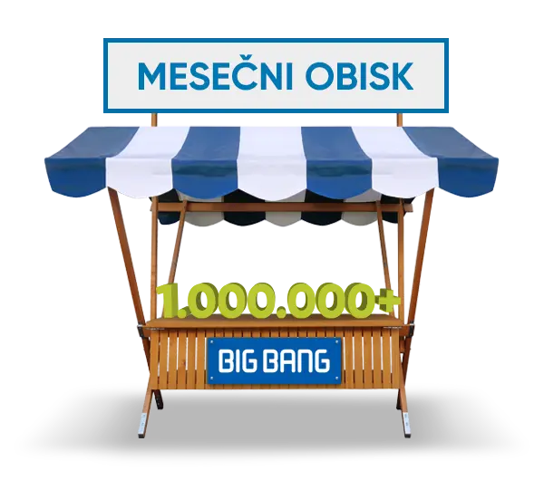 S pridružitvijo na spletni tržnici svoje produkte lahko izpostavite 450.000 mesečnim obiskovalcem in 100.000 aktivnim lojalnim kupcem Big Bang-a ter tudi obiskovalcem v fizičnih trgovinah preko prodajalcev.