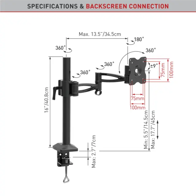 Nagib, Vrtljivo, Vrtenje (pokončno/ležeče), Nastavitev višine