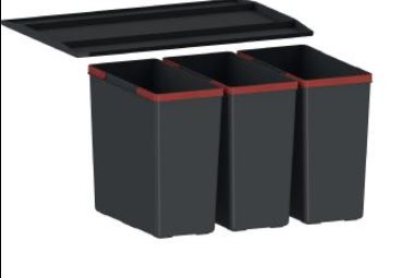 EASY SORT 60 Omarica: 60 cm Dimenzije: 564 x 378 x 343 mm Vrsta ločevalnika odpadkov: Namestitev v predal Vgradnja/namestitev: uporablja predal kuhinjske omare Opombe: - proizvedeno iz reciklirane plastike - izredno mocan rocaj (do 18 kg) - antisepticni material preprecuje rast 99% bakterij - protizdrsne blazinice