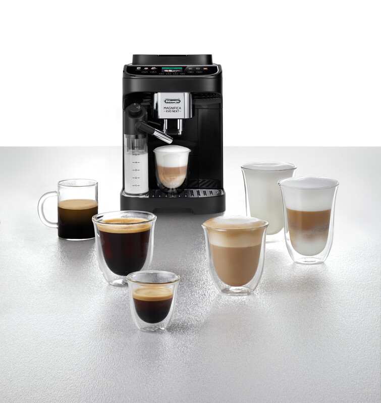 Z možnostjo izbire med 9 kavnimi in mlečnimi napitki aparat zadovolji vse okuse. Intuitivni 2,4-palčni barvni zaslon TFT in gumbi na dotik omogočajo enostavno upravljanje in prilagajanje napitkov po vaših željah. Izbirate lahko med 5 velikostmi, 4 stopnjami intenzivnosti in 3 temperaturami, medtem ko tehnologija LatteCrema Hot zagotavlja kremasto in bogato mlečno peno pri vseh napitkih na osnovi mleka.