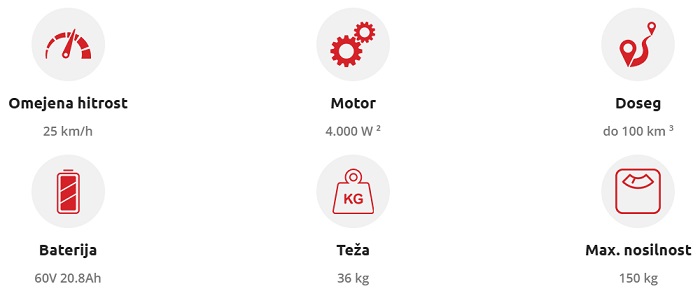 Visokokakovostna baterija omogoča dolge razdalje z enim polnjenjem, kar je idealno za dnevne vožnje ali daljše izlete.