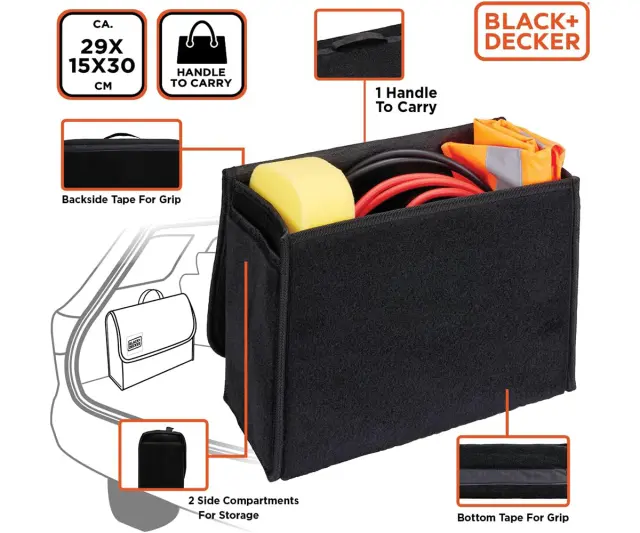 Organizator avtomobilskega prtljažnika BLACK+DECKER, 29 x 15 x 30 cm, črn