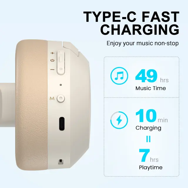 49-urno predvajanje - Do 49 ur predvajanja glasbe vas bo razvajalo. Napolnite ga lahko prek vhoda tipa C. Polnite za 10 minut in predvajajte glasbo 7 ur!