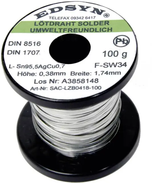 Edsyn SAC-LZB 0418 spajkalna žica\, neosvinčena tuljava Sn95\,5AgCu0\,7 100 g 1.74 mm