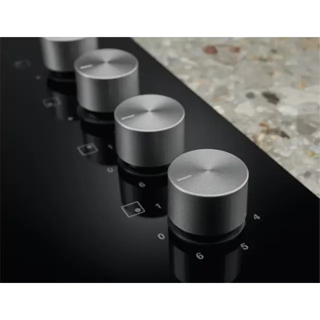 En gumb, ki ga pritisnete in zavrtite, združuje nadzor nad toploto in omogoča takojšen vžig gorilnikov na kuhalni plošči in kuhanje brez zakasnitve.