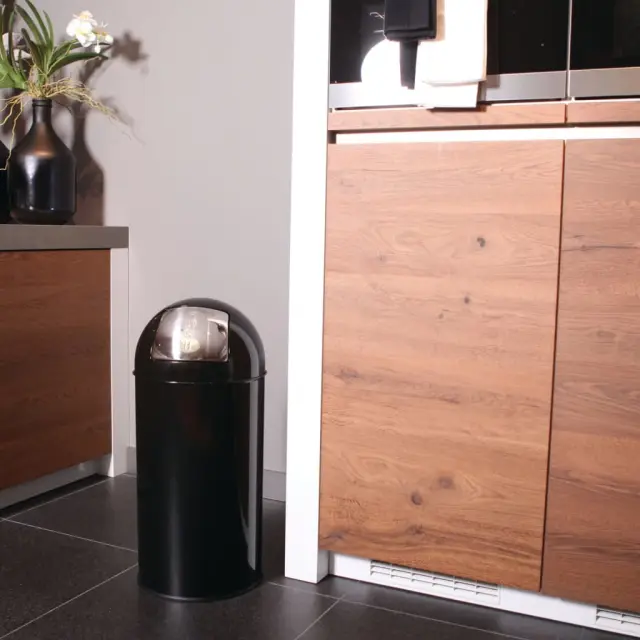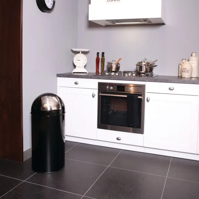 Črni potisni smetnjak znamke EKO je univerzalni koš za smeti s potisnim pokrovom in 40 L notranjim vedrom iz pocinkanega jekla. To je idealna rešitev za odpadke za vsak sodoben prostor. Ta EKO smetnjak je opremljen z gumijastim držalom za vrečke.Barva: ČrnaMaterial: JekloVelikost: 34 x 74 cm (premer x V)Prostornina: 40 LOdstranljiv pocinkan koš za smetiS potisnim pokrovomGumijast obroč za držanje vrečk za smeti 440063
