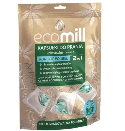 EkoMlin Slovenija Univerzalne Konopljine Kapsule za Pranje 2v1, 30 kosov