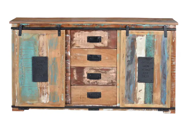 Ekskluzivna kredenca zaradi večbarvnega recikliranega lesa