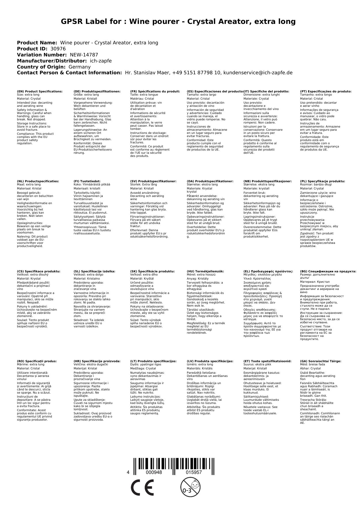 Izkoristite najboljše iz vašega vina z našim Weinausgießerjem Crystal Areator v ekstra dolgi izvedbi! Ta naprava z beljenjem vam pomaga dekantirati vino neposredno med zlivanjem, kar razkrije njegov polni aroma brez dolge priprave. Ne glede na to, ali strežete rdeče, belo ali rosé vino, bo ta Weinausgießer zagotovil optimalno beljenje kisika, ki izboljša okus in vonj.