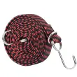 Enostaven za uporabo in varen: Ta trak z robustnimi kovinskimi kavlji omogoča hitro in enostavno pritrditev vaše prtljage. Kavlji so zasnovani za varen oprijem, kar preprečuje nenamerno odpenjanje in zagotavlja, da vaši predmeti ostanejo na svojem mestu.