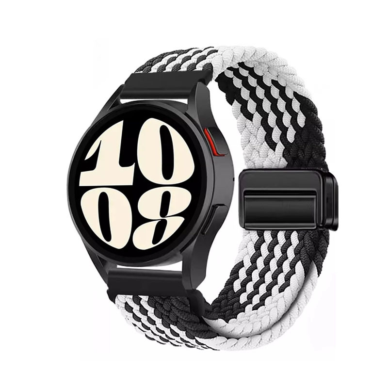 Varno magnetno zapiranje: Naš pašček za uro z magnetnim zapiranjem nudi varno in nastavljivo prileganje. Močna magnetna zaponka zagotavlja, da vaša pametna ura ostane trdno na mestu, kar vam daje mir pri vsaki aktivnosti. Enostavno prilagodite pašček na želeno tesnost za prilagojeno prileganje. Magnetno zapiranje ni samo varno, ampak tudi neverjetno priročno, saj omogoča hitre in enostavne prilagoditve na poti. Ta pašček za uro Samsung ima zanesljivo magnetno zapiranje.