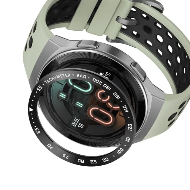 Športna estetika: Izboljšajte videz svoje ure Huawei Watch GT2E s tem elegantnim črnim okvirjem z jasnimi belimi oznakami. Dirkaško navdihnjen dizajn doda pridih športne prefinjenosti in spremeni vašo pametno uro v eleganten dodatek, primeren za vsako priložnost. Ne glede na to, ali obiskujete telovadnico, poslovni sestanek ali uživate v sproščenem izletu, ta okvir izboljša vizualno privlačnost vaše ure in dopolnjuje vaš osebni slog. Je preprost, a učinkovit način za prilagoditev vaše naprave in izražanje.