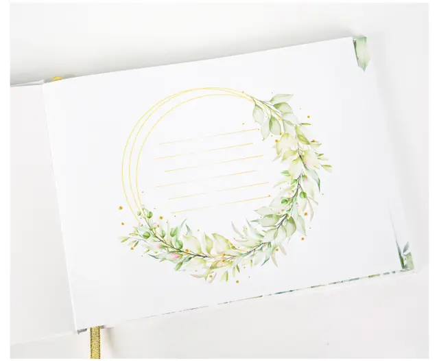 Visokokakovosten 120G papir: Naša knjiga gostov ima 120 strani vrhunskega 120G papirja, ki zagotavlja razkošno pisalno površino, ki preprečuje pronicanje črnila in zagotavlja gladko izkušnjo pisanja za vaše goste. Kakovosten papir izboljša berljivost sporočil in omogoča uporabo različnih pisalnih pripomočkov brez skrbi glede razmazovanja ali peres. To zagotavlja, da vsaka opomba in podpis ostaneta jasna in čista, kar ohranja lepoto občutkov vaših gostov za prihodnje generacije.