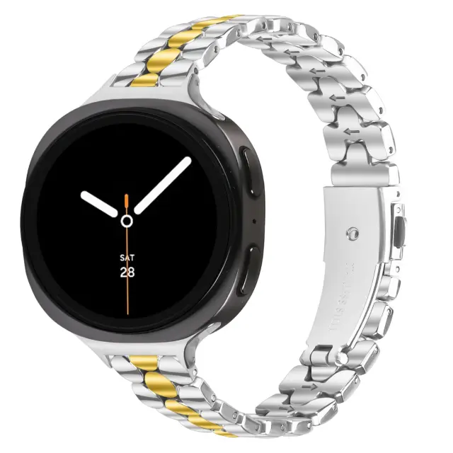 Varno in nastavljivo prileganje: Jekleni pas je zasnovan z varno zaponko, ki zagotavlja, da vaša ura Samsung Galaxy Watch 8/8 Classic ostane trdno na mestu. Nastavljive povezave vam omogočajo, da prilagodite prileganje velikosti zapestja, kar zagotavlja maksimalno udobje in preprečuje zdrs. Enostavna zaponka omogoča enostavno namestitev in odstranitev pasu, robustna konstrukcija pa zagotavlja, da ostane varno pritrjen ves dan. Ta pas ponuja popolno ravnovesje med varnostjo in nastavljivostjo, zaradi česar je idealna izbira za aktivne posameznike in tiste, ki cenijo udobje.