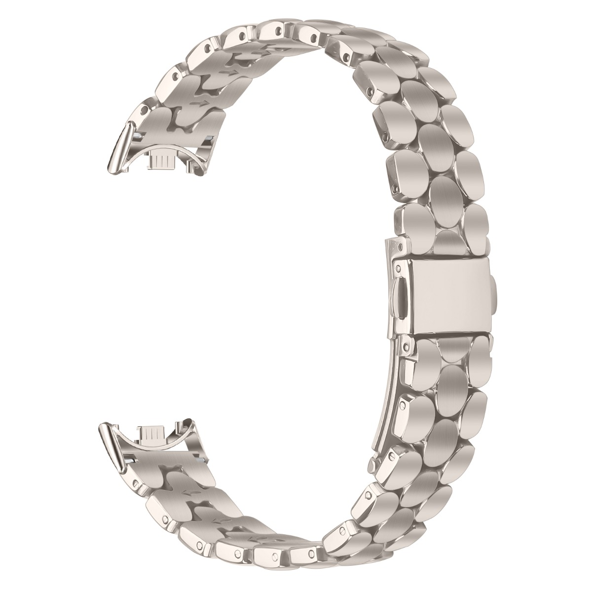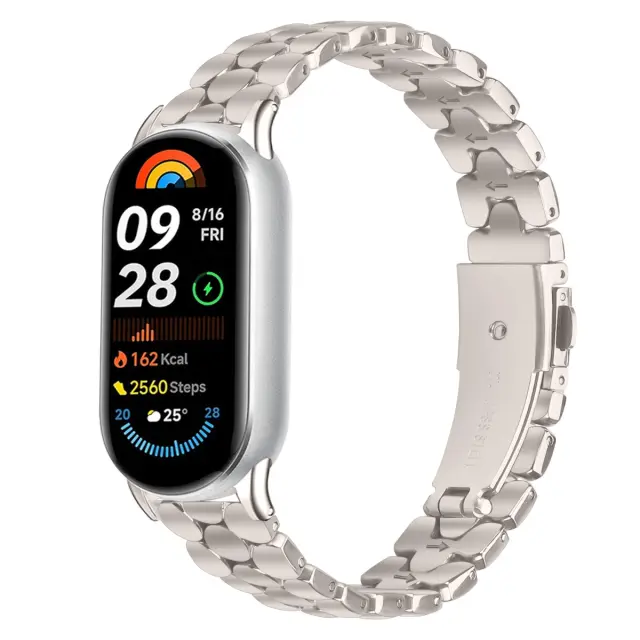 Eleganten in prefinjen dizajn: Izboljšajte svoj Xiaomi Band 8, 9 ali 10 s tem izvrstnim jeklenim paščkom z biseri. Eleganten dizajn doda pridih prefinjenosti vaši zapestnici, zaradi česar je popoln za vsakodnevno nošenje in posebne priložnosti. Poudarki, podobni biserom, ustvarjajo edinstven in privlačen videz, ki loči vašo pametno uro od drugih. Ta pašček ni le dodatek; je modna izjava, ki dopolnjuje vaš osebni slog, hkrati pa zagotavlja, da vaš Xiaomi Band ostane varno pritrjen. Prefinjena estetika izboljša celoten videz vaše naprave in jo spremeni v kos nakita.