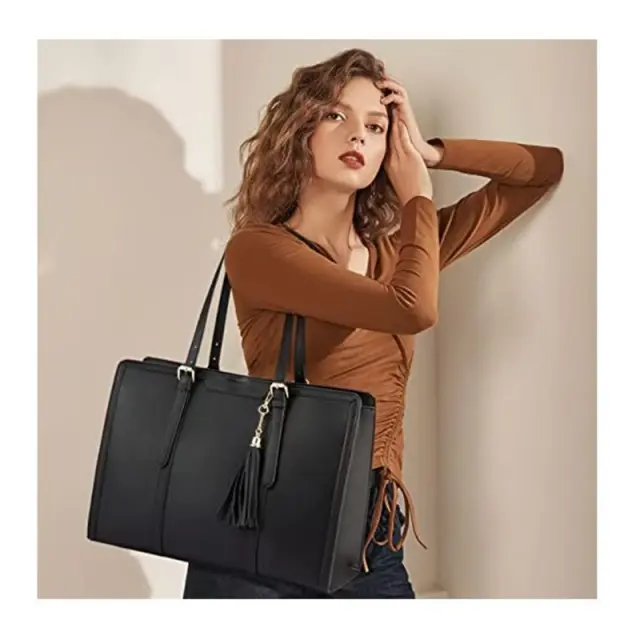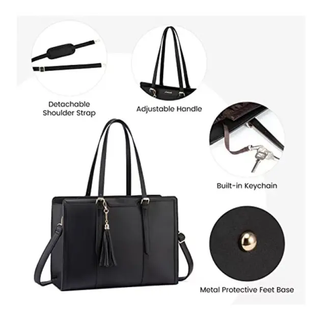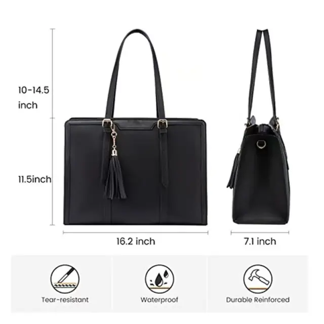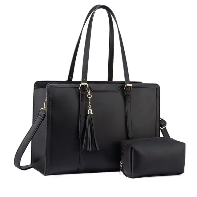 Eleganten komplet črnih torbic iz PU usnja: torba za prenosnik in torbica