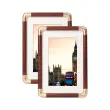 Eleganten okvir za fotografije z bakrenimi vogali in leseno teksturo