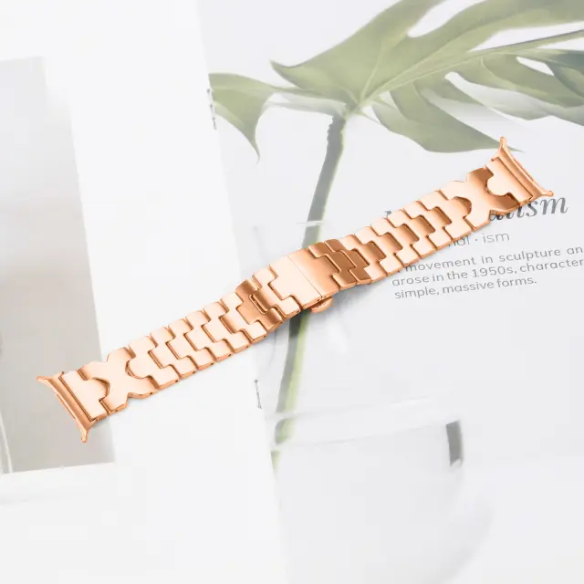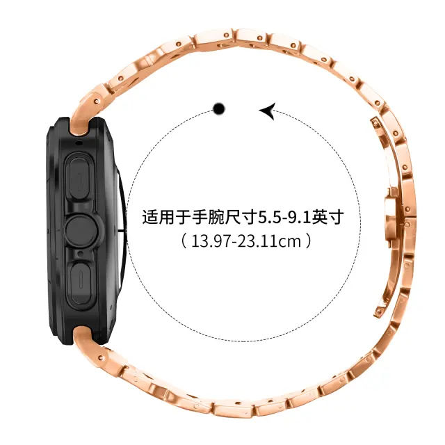 Varna zaponka metuljček: Zaponka metuljček v obliki črke X zagotavlja varno in zanesljivo zapiranje, ki preprečuje nenamerno odpenjanje. Ta oblika ne samo da povečuje varnost vaše pametne ure, temveč tudi dodaja pridih elegance celotni estetiki. Zaponka je enostavna za uporabo, kar omogoča hitro prilagajanje in tesno prileganje. Njen poenostavljen videz se brezhibno integrira s pasom in ustvarja usklajen in eleganten videz, ki izboljša vašo izkušnjo nošenja ure.