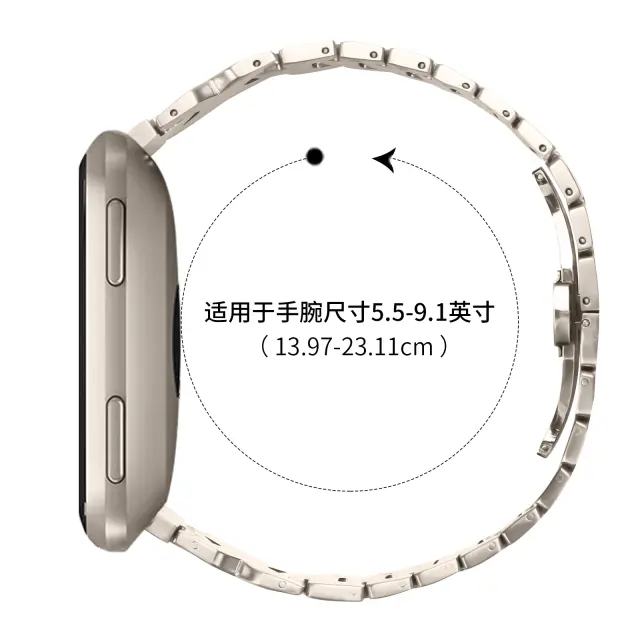 Varna zaponka metuljček: Zaponka metuljček v obliki črke X zagotavlja varno in zanesljivo zapiranje, ki preprečuje nenamerno zdrs. Ta oblika ne samo da poveča estetsko privlačnost paščka, ampak tudi ponuja enostavnost uporabe. Zaponko je enostavno odpreti in zapreti s preprostim pritiskom na gumba za sprostitev, kar zagotavlja tesno in udobno prileganje. Njegova poenostavljena oblika zmanjšuje obseg in povečuje udobje, zaradi česar je praktična in elegantna izbira za vaš Fitbit Versa, Lite ali Versa 2.