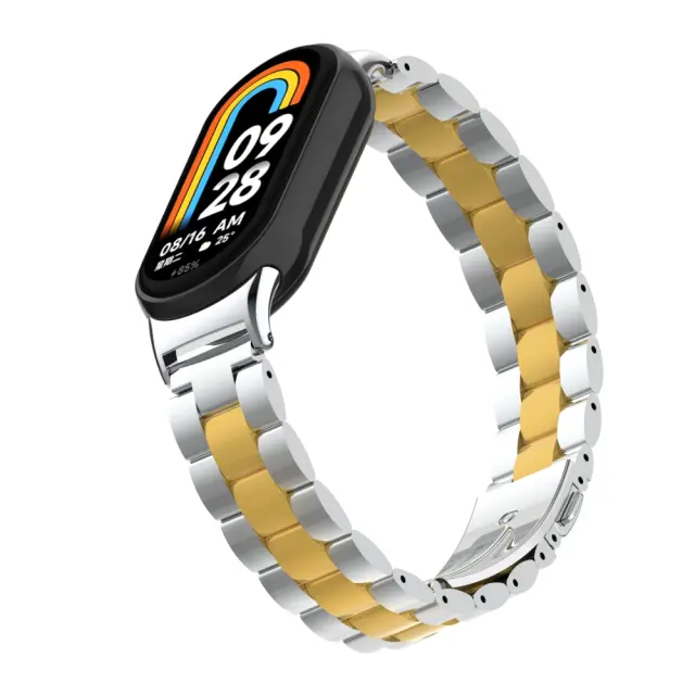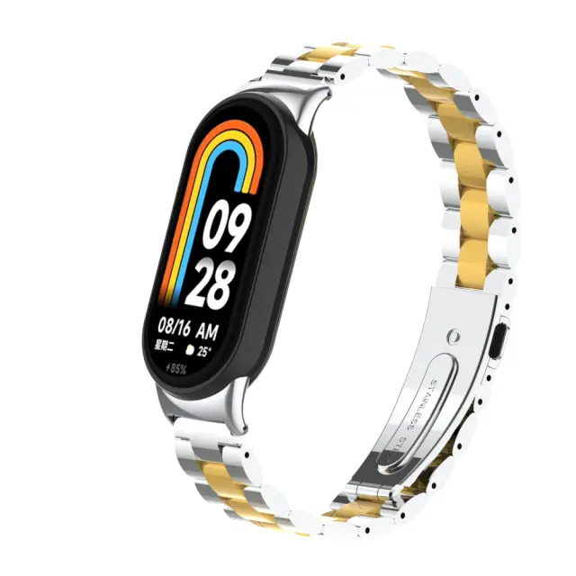 Eleganten dizajn: Izboljšajte videz svoje Xiaomi Mi Band 9 s tem elegantnim paščkom iz nerjavečega jekla. Klasična oblika s tremi kroglicami doda pridih prefinjenosti, zaradi česar je primeren za priložnostne in formalne priložnosti. Polirana površina lovi svetlobo in ustvarja subtilen sijaj, ki povečuje njegovo vizualno privlačnost. Na voljo v različnih barvah, ki ustrezajo vašemu osebnemu slogu, ta pašček spremeni vašo napravo za sledenje telesni pripravljenosti v eleganten dodatek.