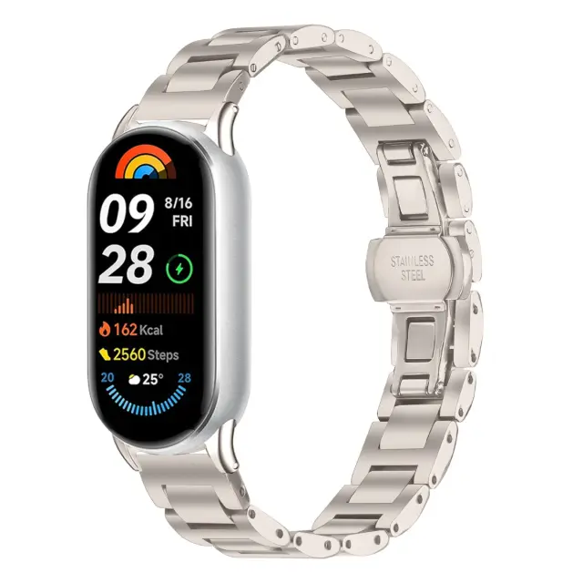 Perfect Compatibility: Ta pašček iz nerjavečega jekla, posebej zasnovan za združljivost z Xiaomi Band 8, Xiaomi Band 9 in Xiaomi Band 10, zagotavlja brezhibno prileganje in enostavno namestitev. Natančna zasnova zagotavlja, da se pašček varno pritrdi na vaš Xiaomi Band, kar zagotavlja zanesljivo in elegantno zamenjavo za originalni pašček. Uživajte v popolni mešanici sloga in funkcionalnosti s tem po meri oblikovanim paščkom, ki izboljšuje celoten videz in občutek vašega Xiaomi Banda. Pašček se brezhibno integrira z vašo napravo, ohranja vse njene funkcije in hkrati dodaja pridih osebnega sloga.