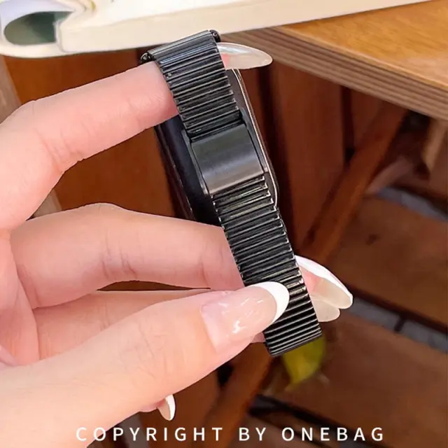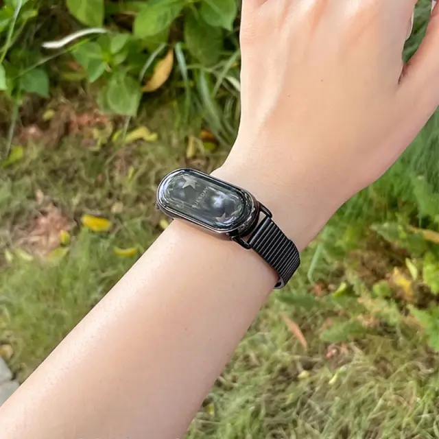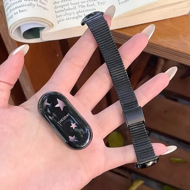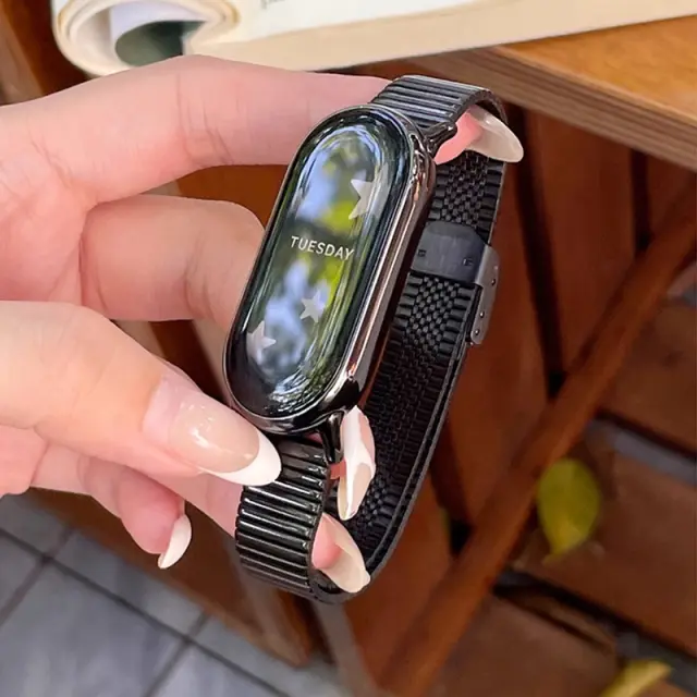 Varno zapiranje z zaponko: Varno zapiranje z zaponko zagotavlja brezskrbnost, saj veste, da bo vaš Xiaomi Band 8 ali 9 varno ostal na vašem zapestju. Zaponka je enostavna za uporabo in prilagajanje, kar vam omogoča, da najdete popolno prileganje za vašo velikost zapestja. Ni vam več treba skrbeti, da bi se vaš pašček za uro med aktivnostmi odprl. Uživajte v svobodi in samozavesti, saj veste, da je vaša naprava varna in zaščitena, ne glede na to, kaj počnete. Robustna zasnova zagotavlja dolgotrajno delovanje.