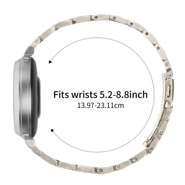 Nastavljiva dolžina: Ta pašček za uro iz nerjavečega jekla, združljiv z Garmin Lily 2, ima nastavljivo dolžino, ki zagotavlja popolno prileganje za vsako velikost zapestja. Nastavljive povezave vam omogočajo, da preprosto prilagodite pašček na želeno dolžino, kar zagotavlja maksimalno udobje in varnost. Natančen mehanizem za nastavitev zagotavlja, da pašček ostane varno na mestu in preprečuje nenamerno zdrs. Ta funkcija je še posebej koristna za tiste z manjšimi ali večjimi zapestji, saj odpravlja potrebo po dodatnih orodjih ali strokovnih prilagoditvah. Nastavljiva dolžina zagotavlja, da pašček ostane udoben ves dan, ne glede na vašo raven aktivnosti. Uživajte v prilagojenem prileganju, ki izboljša slog in funkcionalnost vaše ure Garmin Lily 2.
