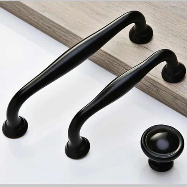 Eleganten ročaj za omarico iz črne aluminijeve zlitine - Zasnova z eno luknjo S
