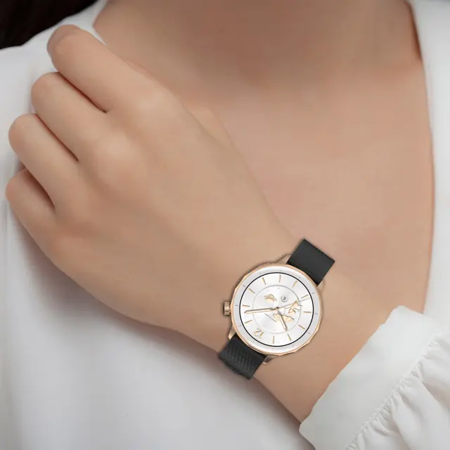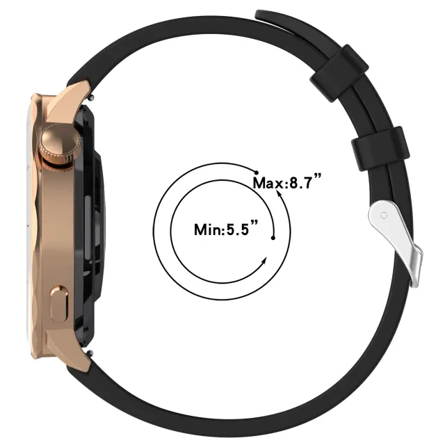Varno in nastavljivo: Pašček ima zanesljivo zaponko, ki zagotavlja varno prileganje na vašem zapestju. Več lukenj za nastavitev vam omogoča, da prilagodite dolžino, da se popolnoma ujema z velikostjo vašega zapestja, preprečuje zdrs in zagotavlja, da ura ostane na mestu med katero koli aktivnostjo. Ta varna in nastavljiva zasnova zagotavlja brezskrbnost in udobno, osebno prileganje.
