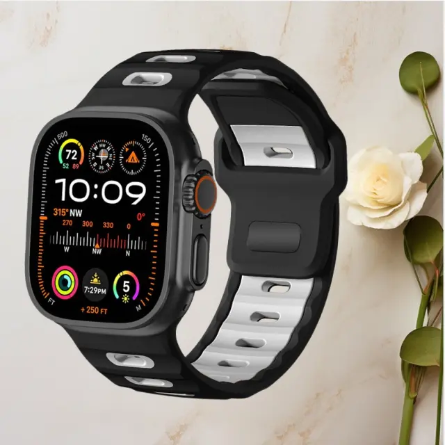 Eleganten silikonski pašček za Apple Watch 42/44/45/46/49mm Black&White