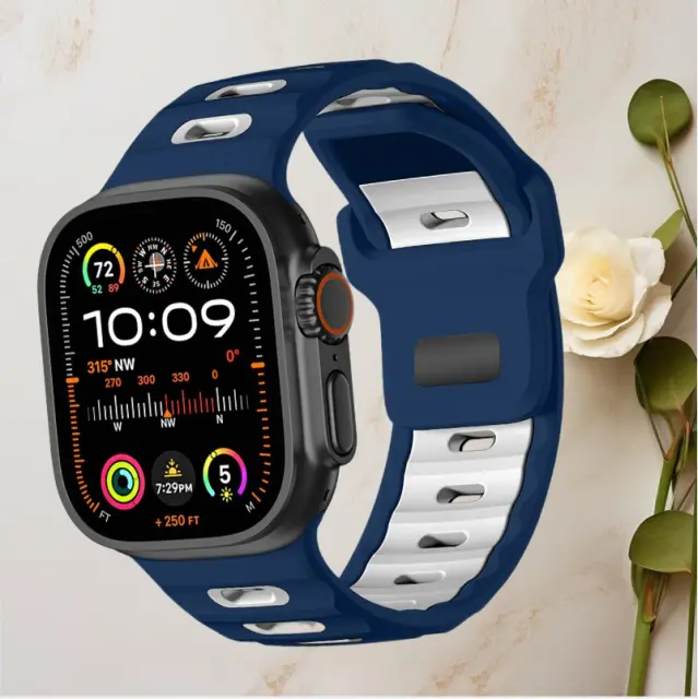 Eleganten silikonski pašček za Apple Watch 42/44/45/46/49mm Blue + White