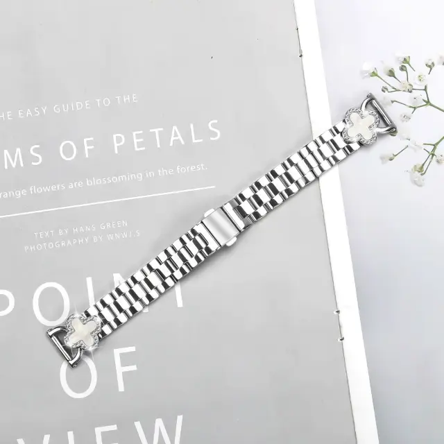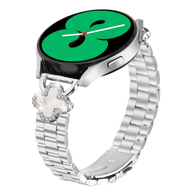 Eleganten dizajn s štiriperesno deteljico: Povzdignite svoj Samsung Galaxy Watch s tem osupljivim paščkom s štiriperesno deteljico. Zapleten dizajn s štiriperesno deteljico, izdelan iz zlitine in smole, doda pridih prefinjenosti in elegance vaši zapestnici. Je popoln dodatek tako za vsakdanjo nošnjo kot za posebne priložnosti, ki brezhibno združuje modo in funkcionalnost. Spremenite svojo uro Samsung Galaxy Watch v eleganten modni izraz, ki odraža vašo edinstveno osebnost.