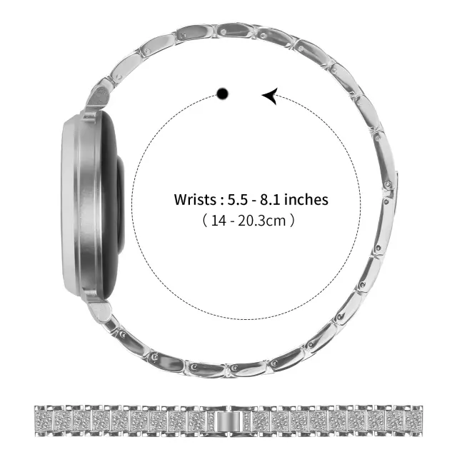 Popolno prileganje: Ta pašček za uro, zasnovan posebej za Garmin Lily 2, nudi brezhibno in varno prileganje. Natančne dimenzije (dolžina 18 cm, širina 1,4 cm) zagotavljajo, da se pašček popolnoma integrira z vašo pametno uro in izboljša njeno splošno estetiko. Nastavljivi členi vam omogočajo, da prilagodite prileganje velikosti zapestja, kar zagotavlja maksimalno udobje in stabilnost. Zasnova, ki jo je enostavno namestiti, pomeni, da lahko hitro zamenjate svoj stari pašček in nadgradite na to osupljivo različico, posuto z diamanti, v nekaj sekundah. Uživajte v popolni mešanici sloga in funkcionalnosti s tem natančno izdelanim paščkom za uro, združljivim z Garmin Lily 2.