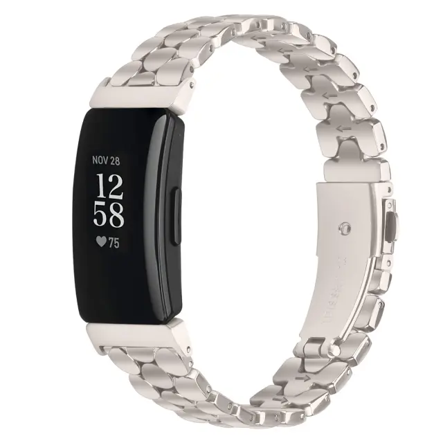 Eleganten in stilski dizajn: Izboljšajte svoj Fitbit Inspire, Inspire 2 ali Inspire HR s to osupljivo biserno zapestnico iz nerjavečega jekla. Elegantna srebrna obdelava doda pridih prefinjenosti vašemu sledilniku aktivnosti, zaradi česar je primeren za vsakodnevno nošenje in posebne priložnosti. Ta pas spremeni vaš Fitbit v modni dodatek, ki brezhibno združuje sledenje telesni pripravljenosti z elegantnim slogom. Biserni dizajn ponuja edinstven in privlačen videz, ki ga loči od standardnih pasov za ure. Uživajte v mešanici funkcionalnosti in mode s to izvrstno zapestnico iz nerjavečega jekla.
