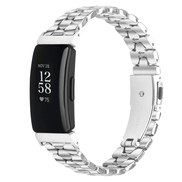 Eleganten in stilski dizajn: Izboljšajte svoj Fitbit Inspire, Inspire 2 ali Inspire HR s to osupljivo biserno zapestnico iz nerjavečega jekla. Elegantna srebrna obdelava doda pridih prefinjenosti vašemu sledilniku aktivnosti, zaradi česar je primeren za vsakodnevno nošenje in posebne priložnosti. Ta pas spremeni vaš Fitbit v modni dodatek, ki brezhibno združuje sledenje telesni pripravljenosti z elegantnim slogom. Biserni dizajn ponuja edinstven in privlačen videz, ki ga loči od standardnih pasov za ure. Uživajte v mešanici funkcionalnosti in mode s to izvrstno zapestnico iz nerjavečega jekla.