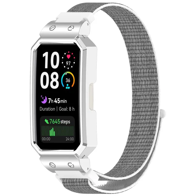 Eleganten tkan najlonski pašček s srebrnim okvirjem za Huawei Band Grey