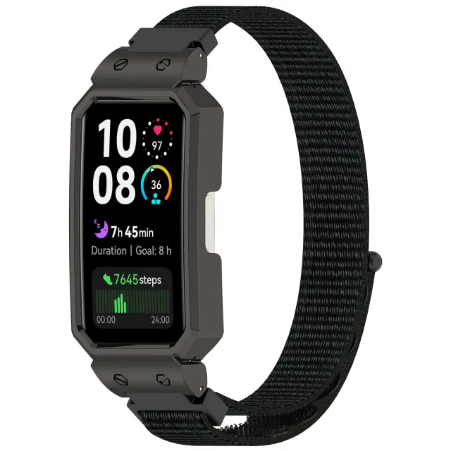 Varno kovinsko ogrodje: Priloženo srebrno kovinsko ogrodje zagotavlja robustno zaščito za vaš Huawei Band. Izdelano iz visokokakovostnih materialov, ščiti vašo napravo pred praskami, udarci in nenamernimi udarci. Natančne izrezljane odprtine zagotavljajo popoln dostop do vseh gumbov in senzorjev, ne da bi ovirale funkcionalnost. Elegantna srebrna obdelava doda pridih elegance vašemu paščku, dopolnjuje pa živahni najlonski pašček za prefinjen videz. Ohranite svoj Huawei Band varen in eleganten s tem trpežnim kovinskim ogrodjem.