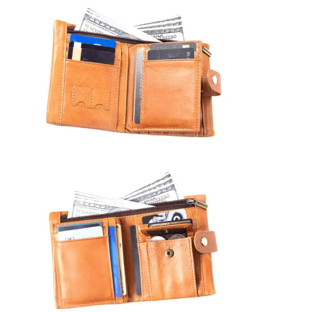 Eleganten usnjen moški ženski etui z RFID zaščito Khaki