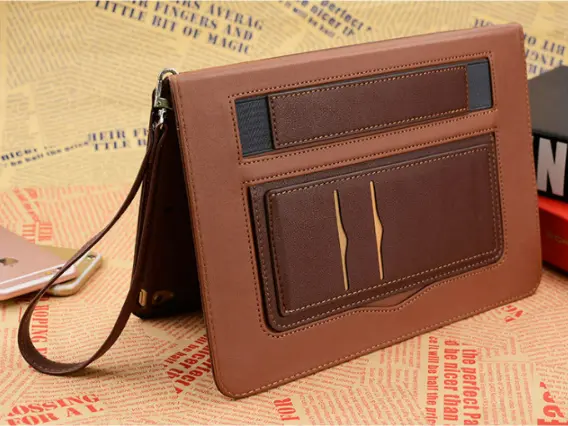 Priročno shranjevanje: Z vgrajenim žepom za shranjevanje na zadnji strani vam ta ovitek omogoča, da s svojim iPadom nosite bistvene predmete, kot so gotovina, kartice ali dokumenti. Ta dodatna funkcionalnost odpravlja potrebo po ločeni denarnici ali torbi, s čimer združuje vaše bistvene stvari v en priročen paket. Imejte svoje potrebščine pri roki in potujte lahkotno s to inovativno zasnovo.