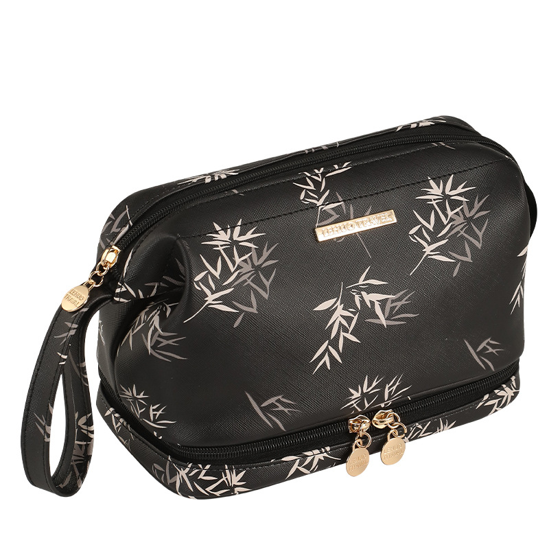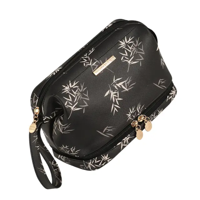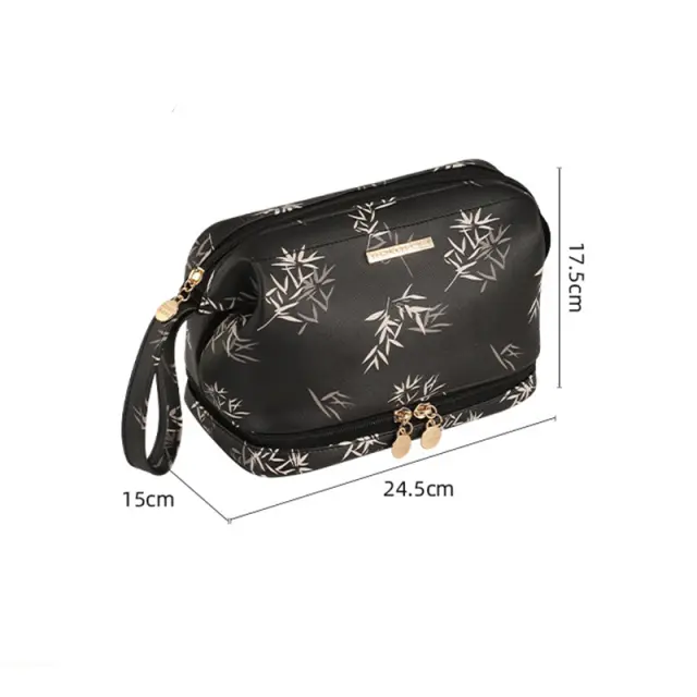 Vrhunsko PU usnje: Ta kozmetična torbica, izdelana iz visokokakovostnega PU usnja, izžareva prefinjenost in nudi izjemno vodoodpornost. Gladka, voljna tekstura ni le prijetna na dotik, ampak jo je tudi enostavno očistiti, kar zagotavlja, da vaša torba ostane videti brezhibna tudi po nenamernih razlitjih. Robusten material zagotavlja odlično zaščito za vašo dragoceno kozmetiko, jo ščiti pred udarci, praskami in vlago. Uživajte v elegantni in praktični rešitvi za vaše potrebe shranjevanja lepote.