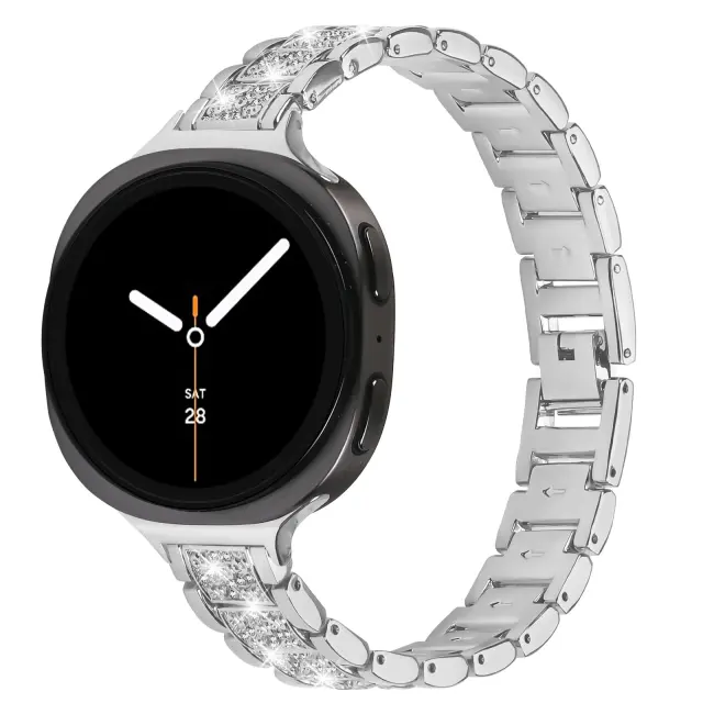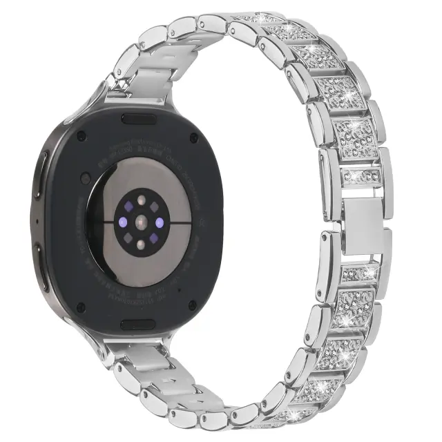 Enhanced Style: Izboljšajte videz svoje ure Samsung Watch 8 (manjša različica) s to izvrstno zapestnico iz nerjavečega jekla, posuto z diamanti. Bleščeči diamanti dodajo pridih razkošja in prefinjenosti, s čimer vašo pametno uro spremenijo v eleganten dodatek, primeren za vsako priložnost. Ta zapestnica je popolna za tiste, ki želijo izstopati iz množice. Skrbno nameščeni diamanti lepo lovijo svetlobo in ustvarjajo bleščeč učinek, ki bo pritegnil pozornost. To je več kot le zapestnica za uro; je kos nakita, ki dopolnjuje vaš osebni slog in izboljšuje vaš celoten videz. Nadgradite svojo uro Samsung Watch 8 s to osupljivo zapestnico in izkusite popolno mešanico tehnologije in elegance.