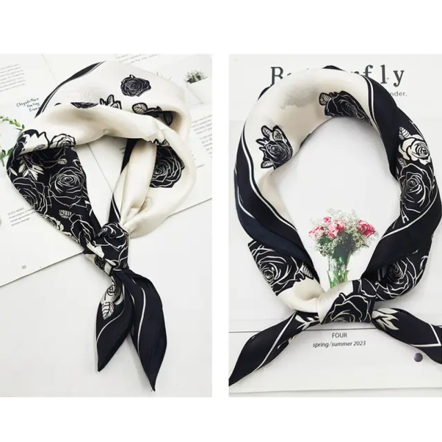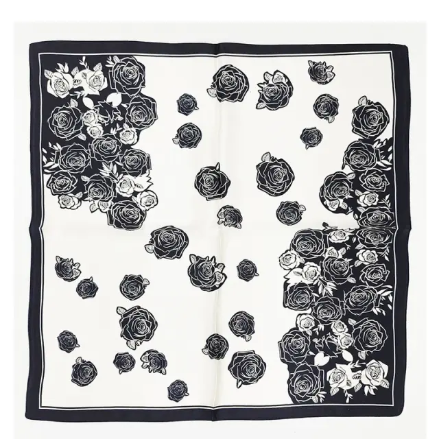 Izvrstna črno-bela vrtnica: Očarljiv črno-beli dizajn vrtnice doda tej svileni ruti pridih elegance in prefinjenosti. Brezčasen cvetlični vzorec je popoln tako za neformalne kot formalne priložnosti, zaradi česar je vsestranski dodatek za vsako garderobo.