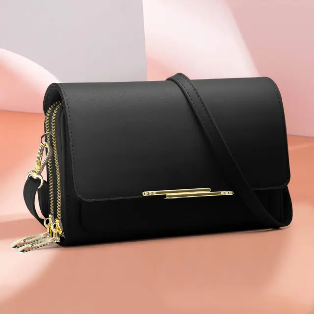 Praktična torba za shranjevanje vašega pametnega telefona in osebnih stvari. Ima dvojni predal in enostavno dostopen sprednji žep za organiziranje vseh vaših osnovnih stvari. Notranji žep na zadrgo varuje dragocenosti. Priložen 130 cm naramni trak za enostavno prenašanje.