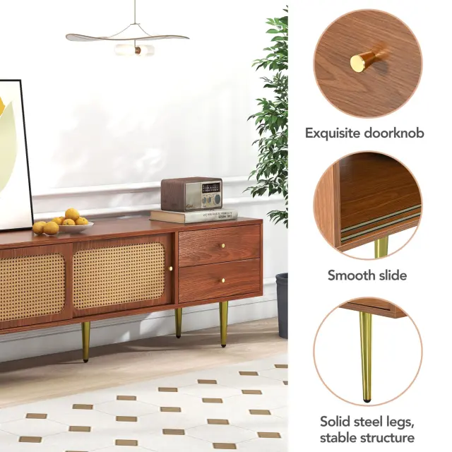 Elegantna TV omarica iz orehovega lesa z ratanovimi vrati in predali - 160x40x60 cm