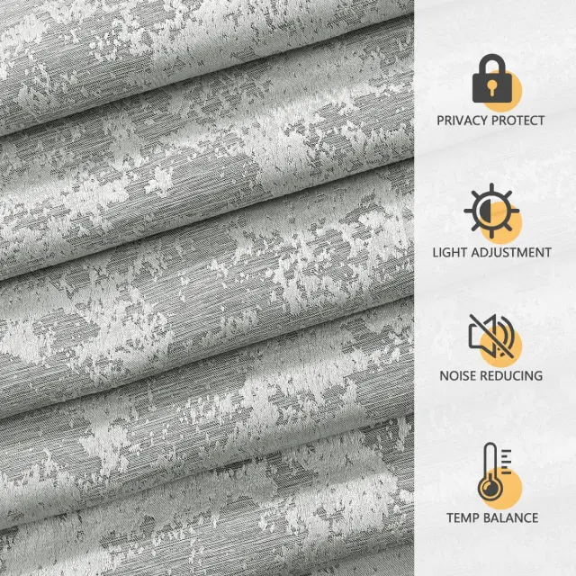 Učinkovito blokiranje svetlobe: Uživajte v popolni temi in zasebnosti s temi zatemnitvenimi zavesami. Tesno tkana tkanina učinkovito blokira sončno svetlobo in ulične svetilke, kar zagotavlja miren spanec in ščiti vaše pohištvo pred bledenjem zaradi izpostavljenosti soncu.