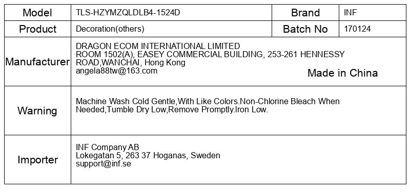 Strojno pranje, hladno, nežno, s podobnimi barvami. Belilo brez klora, ko je potrebno, suho v sušilnem stroju, takoj odstranite.