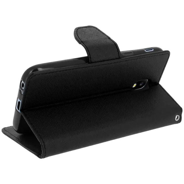 Ovitek za denarnico serije Fancy – črn. Notranji silikonski ovitek, ki se prilagaja obliki vašega pametnega telefona. Učinkovito ščiti vaš telefon pred udarci in praskami. Notranja prevleka z držalom za kartice za optimalno uporabo.
