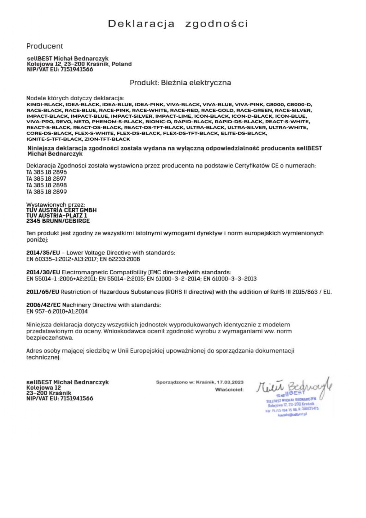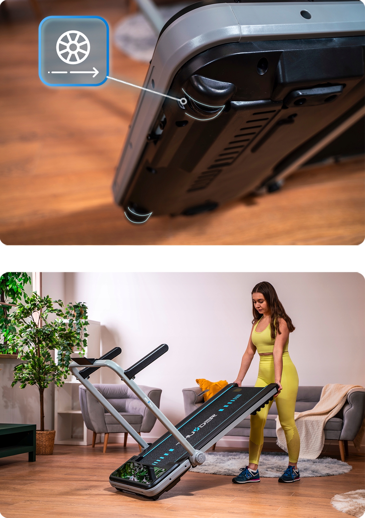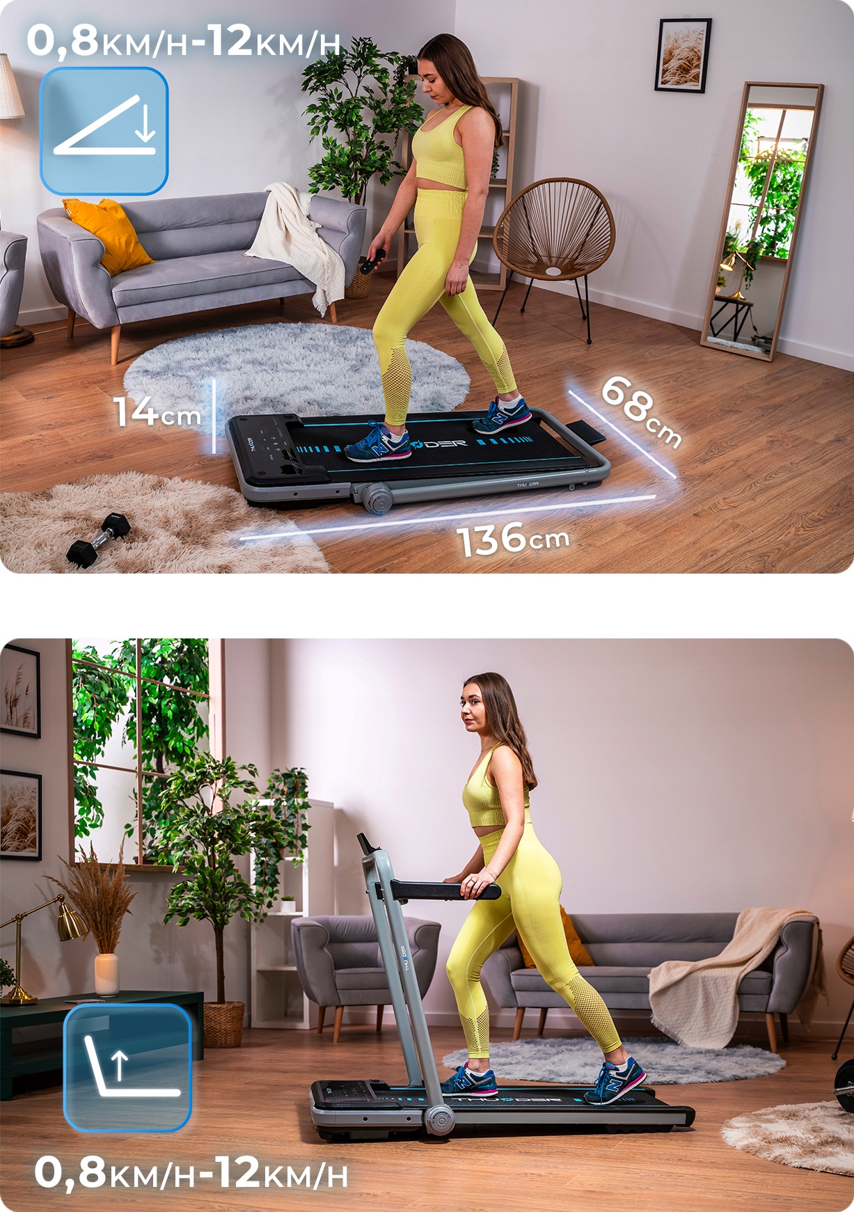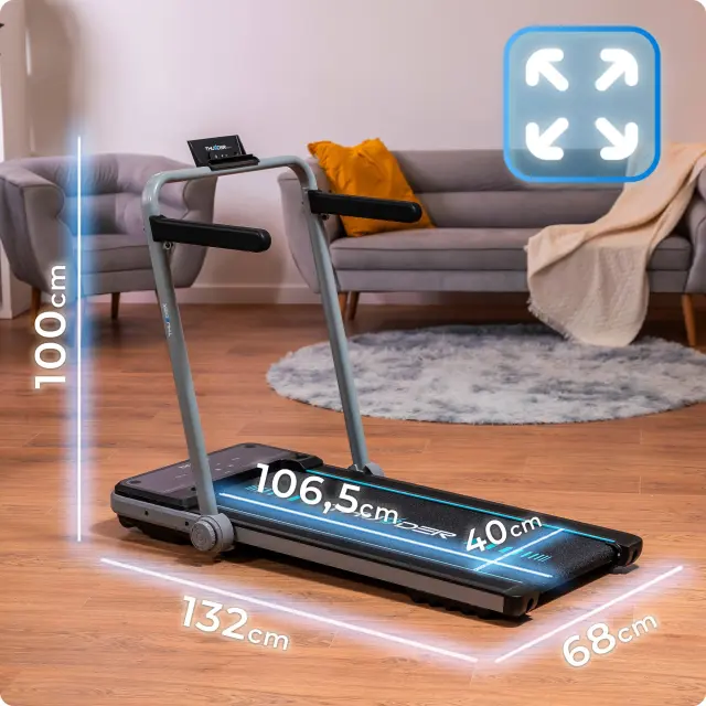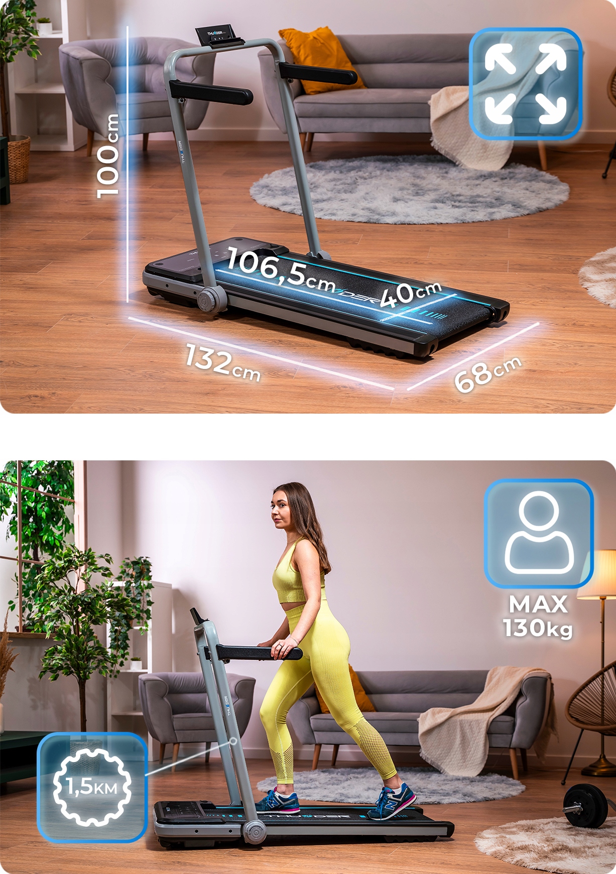 Mere razložene tekalne steze: 68 cm (širina) x 132 cm (dolžina) x 100 cm (višina)