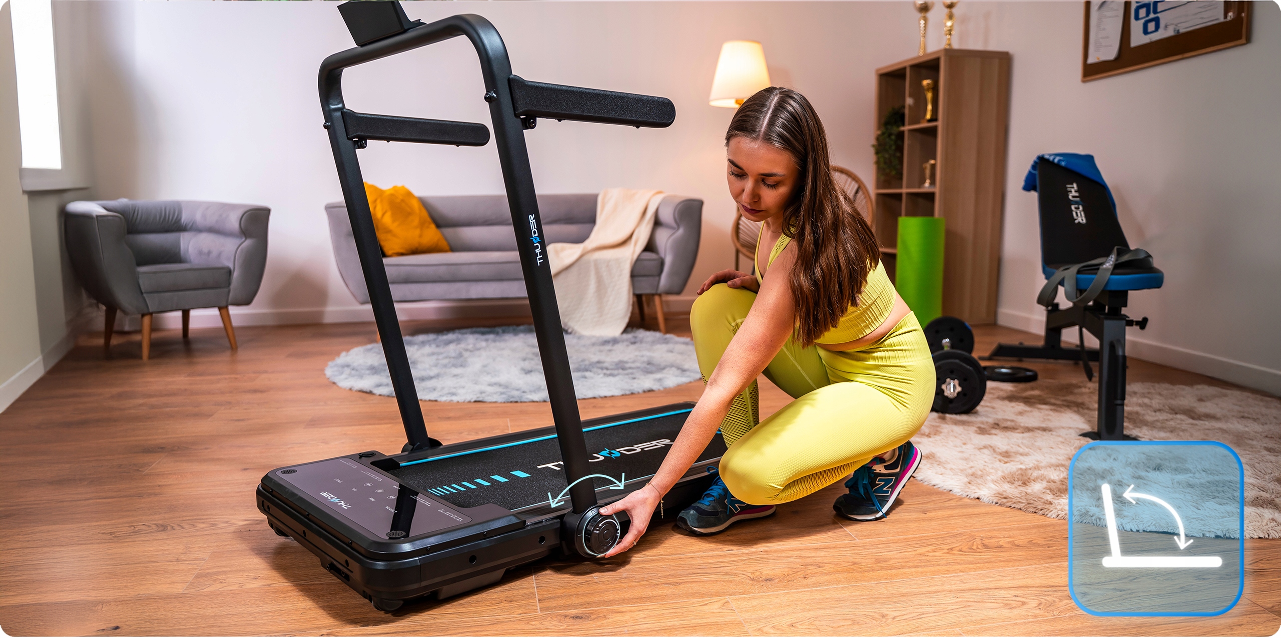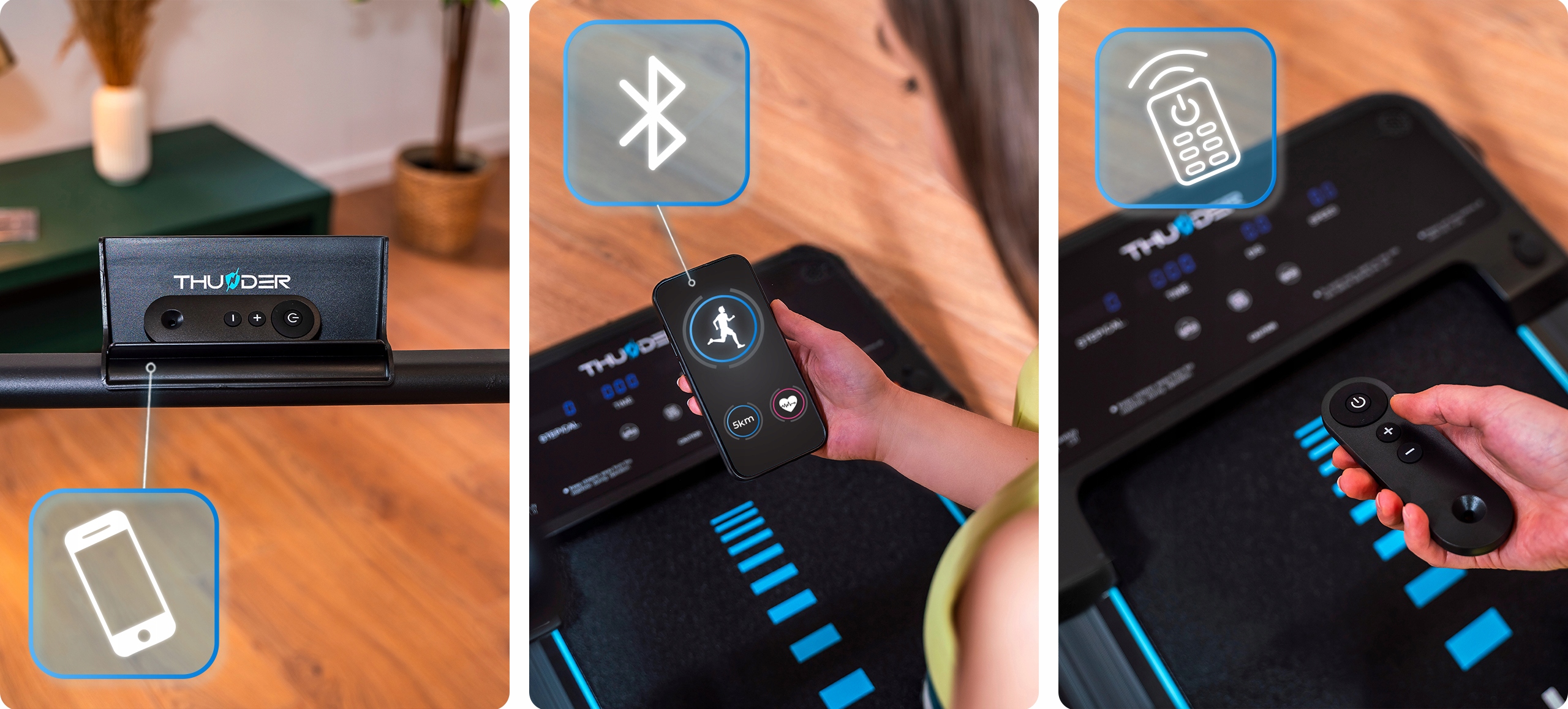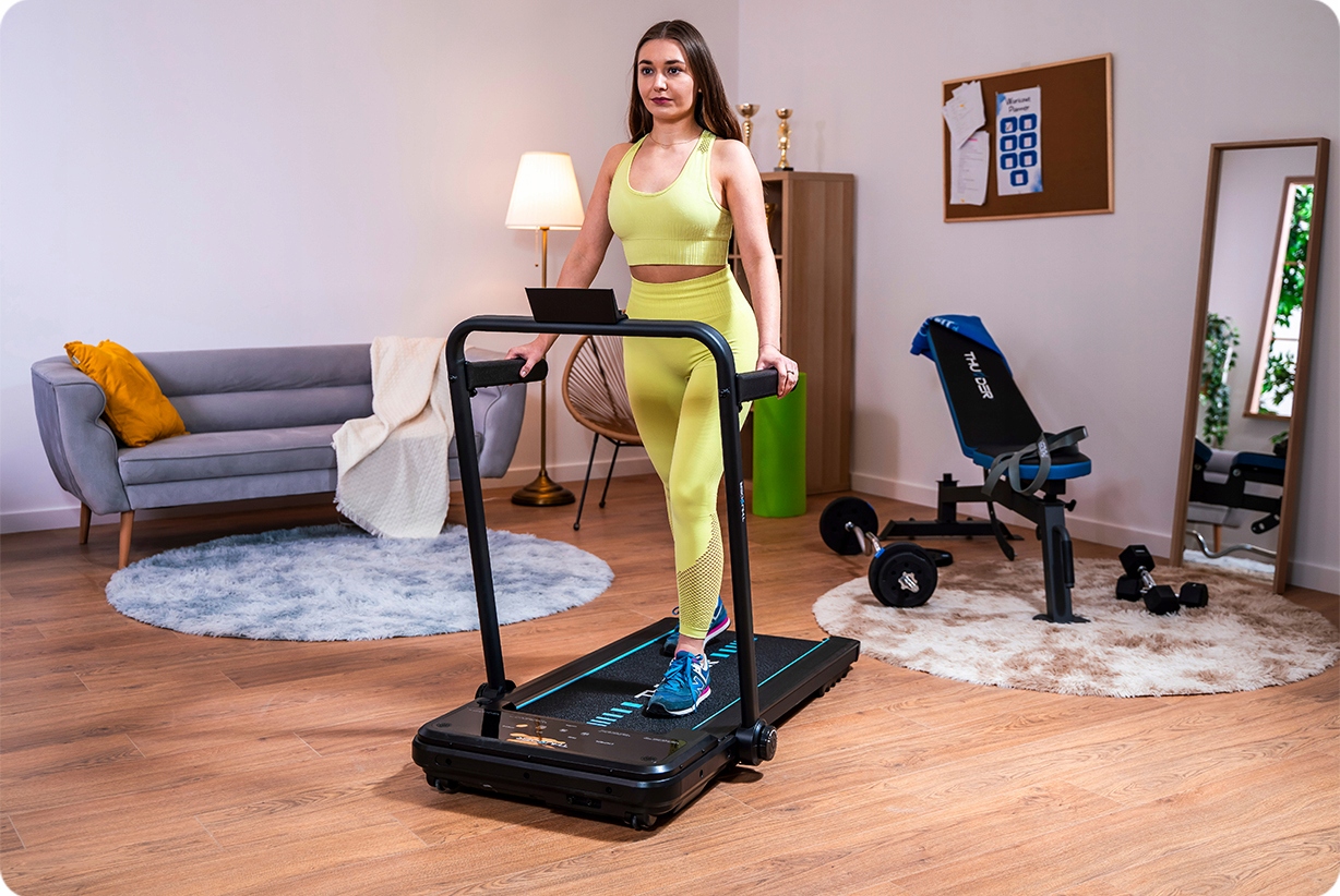 Iščete kompaktno, a hkrati napredno napravo za vadbo doma? Tekalna steza THUNDER® IMPACT-BLACK je idealna rešitev, ki združuje udobje, funkcionalnost in sodobne tehnologije ter zagotavlja učinkovito vadbo vsak dan.
