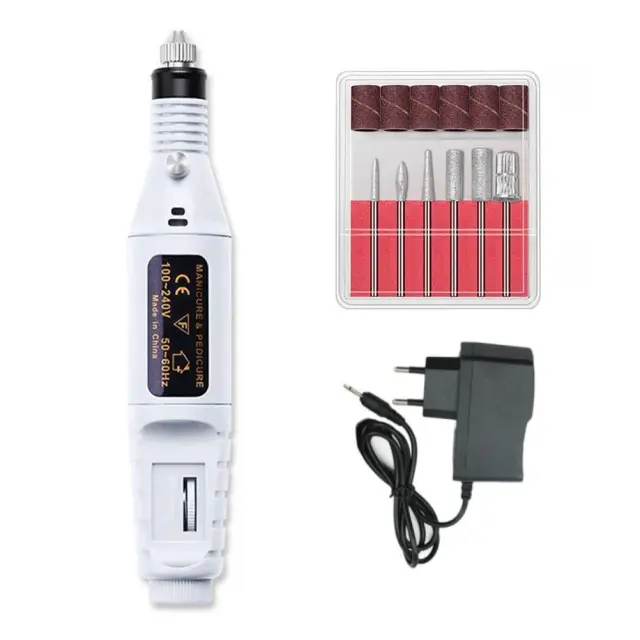 Priloženi dodatki: Majhna gladka električna pilica za nohte, ki vključuje 6 nastavkov in 6 brusnih papirjev. Posebej primeren za akrilno poslikavo nohtov, odličen pa je tudi za druge manikure in pedikure.